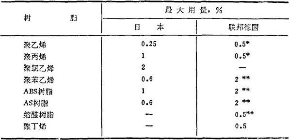 许多国家允许本品用于制作食品包装材料,用量限制是: