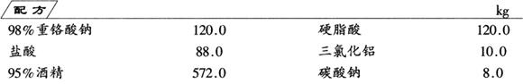 将重铬酸钠、乙醇加入反应釜,在搅拌下滴加盐酸,加完后,继续搅拌反应30~40min,反应物由红棕色转为绿色后,再放置30min左右,使反应充分。然后取反应物少量,配制成10%水溶液,用淀粉碘化钾试验不变蓝即可。