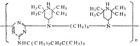 释义 | Chimassorb 944 【结构式】: 意大利Chimosa公司开发的新型受阻胺类光稳定剂,具有如下化学结构: 【释文】: 本品为聚合型光稳定剂,分子量>2500,有效N含量4.6%。粉末状物。适用于聚乙烯和聚丙烯,一般用量为0.1~0.4%。 |