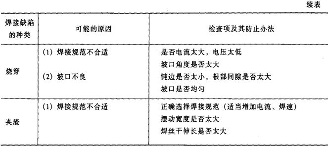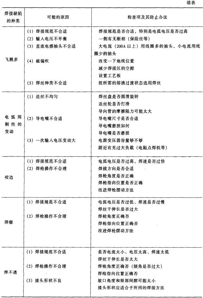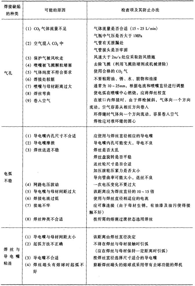 表1-5-25 焊接缺陷的原因及其防止方法[9]
