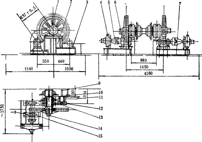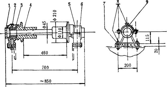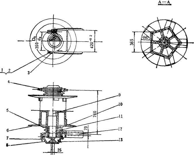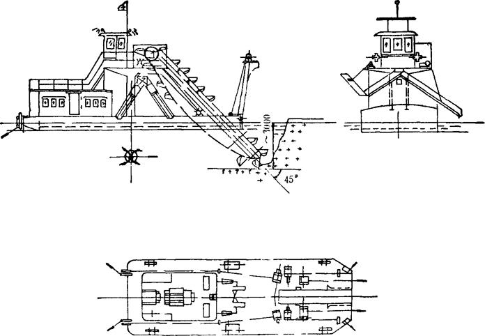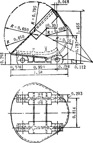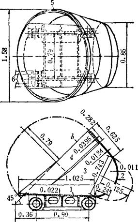 释义 | CYL60—1型链斗式采盐船 (一)CYL60-1型链斗式采盐船的结构及总体布置 如图4-4-7是一种非自航、内供电、液压传动的钢质工程船,由船体、轮机,采盐机械舾装、液压系统五部分组成。 图4-4-7 60m3/h液压链斗式采盐船 1.船体 为横肋骨架结构,机仓设在2#~12#肋骨之间,尾部和左右舷设有水密、油密压载舱,供船工作时盛油、水和调整纵倾之用。为了加强机舱部分的强度,其周围甲板均用厚板,并设有舱口竖板。全船纵向设置了纵桁和纵龙骨,横向设置了强横梁。横隔壁板设有扶强材,各处肘部设有加强肘板。纵横强度均可保证,稳定性好。 2.轮机 主发电机组和其他液压泵、油泵、水泵均设在机舱内。主动力为SC120BC型柴油发电机组,布置于机舱中部2#~9#肋之间。左舷4#~6#肋设有各搅车动力油泵和YB80/40双联叶片泵。右舷2#~6#肋之间,设有链斗传动装置的动力油泵——IZ×B732型轴向柱塞泵。右舷9#肋设有CS32型手摇油泵,左舷9#肋设有Ⅲ型手摇舱底泵。在12#~20#肋前舱之间设有2BA-6型冷却水泵和12m2液压冷却器一台。为了在船泊停机时照明方便,设有12V6-Q-108蓄电池两组。 3.采盐机械 采盐机械由链斗驱动装置、下导轮、导链滚筒、斗桥、盐斗、斗桥起落系统和吊架7部分组成。 链斗驱动装置如图4-4-8。由液压马达、大小齿轮、传动轴和四星轮组成。为了确保采盐时有足够的斗口切盐力,左右舷各设-台液压马达,同步运行。 图4-4-8 链斗驱动装置 1-螺母、螺栓、垫圈 2-底座 3-弹簧、垫圈、螺栓 4-径向柱塞式油马达 5-十字滑块连轴器 6-双列向心球面滚子轴承 7-螺栓、挡圈 8-挡圈 9-斗桥轴 10-键 11-头桥 12-轴承座 13-Φ180四螺栓斜滑动轴承 14-螺母 15-螺栓 下导轮是链斗工作时的随动支承轮,如图4-4-9。其几何形状为五方,又称五星轮。这种结构使链斗过渡平稳,又不致因打滑磨坏链斗。为了调节链条松紧,内设偏心瓦。两端设铸钢轴承座,轴承用干油润滑,两边用盘根压紧,防止粉盐,泥砂进入。 图4-4-9 下导轮装置 1,2-螺母、双头螺栓 3-轴承盖 4-定位销 5-卡环 6-五星轮 7-螺母、螺栓 8-压盖 9-五星轮轴 10-轴套 11-填料 12-轴承座 13-压柱式油栓 导链滚筒是盐斗运行时的支承和轨道,装置在斗桥上端,滚筒由耐磨材料制成,经久耐用,如图4-4-10。 图4-4-10 导链滚筒装置图 1-衬套 2-钢套 3-密封圈 4-滚筒及轴 5-轴承盖 6-轴承体 7-垫木 8-螺栓、螺母 9-油标 盐斗,(如图4-4-11)是链斗式采盐船的主要受力构件,兼有切削、容纳石盐两种功能,为鸭蛋形,阻力小、易切削。前端设有3只斗齿,作为松碎盐层之用。盐斗用钢板焊接而成,用铆钉与斗链联成一体,既保证了强度,又不至过重。斗链为非标准套筒滚子链,斗销和销套用高锰钢制成,经久耐用,便于更换。 图4-4-11 盐斗结构图 1-盐斗 2-斗销 3-衬套 4-外链板 5-销子垫圈 斗桥起落系统如图4-4-12,由动滑轮组、定滑轮组和拉杆等组成。用钢索将钢结构首吊架与斗桥联起来,升降方便。 图4-4-12 斗桥起落装置 1-首吊架 2-滑轮组 3-斗桥 4.舾装全船舾装由总操纵台、液压绞车、导缆桩、机舱棚,工作间及防水照明设备组成。 总操纵室设在上层甲板上,内设电器、液压综合控制台,四壁和顶部均为保温结构,夏季可打开前后活动窗,冬季有电热板取暖,居高临下,视野开阔,操作方便。 机舱棚高出甲板1.5m,并设天窗12扇,侧窗6扇,采光通风良好。船甲板上设有隔音隔热操作间,便于机舱工作人员使用。尾部导缆钳将后横移绞车钢索导入水下,便于驳船通行。 5.液压传动系统 全船液压传动分设两个系统:一是以电动变量柱塞泵为动力,直接供给链斗驱动装置的两台液压马达;一是以电动双联叶片泵为动力,经操纵台供给6台液压绞车。各系统均可自动调节超压泄荷,实现恒扭矩无级变速。两个系统分开,可以确保切盐装置的正常运行。 两油泵均在0流量起动,保证主机安全运行。 (二)CYL60-1型链斗式采盐船技术性能见表4-4-2。 表4-4-2 CYL60-1型链斗式采盐船技术性能表 注:目前国内全液压100m3/h链斗式采盐船,已在内蒙古吉兰太盐场投入使用。该船尾部设定位桩滑车,出料部分配备了粉碎机,通过电缆浮筒供电。 (三)盐斗 1.斗容计算 链斗式采盐船的盐斗斗容(V),不仅取决于链斗式采盐船的生产量(Qs),还取决于斗链速度,而斗链最好能进行无级变速,包括作为装拆斗时使用的特低速度。习惯上,常用“每分钟倒斗数nb”代表斗链速度。 当盐斗充填系数为100%,则可建立如下平衡式: 盐斗充填程度随着采掘深度而改变。一般以斗桥与铅垂线的夹角为45°时的充填程度为100%;当夹角大于或小于此值时,充填系数K在0.635~0.8之间变动,则斗容为: 倒斗数nb一般为16~22斗/min 斗链的平均速度为: 式中 t——斗链节距(m) Z——上导轮边数 nh——上导轮每分钟转数 若以倒盐斗数来计算,则连续斗的nb=Z·nh,此时Uch= 2.盐斗几何参数的确定 盐斗(见图4-4-13),结构为:盐斗链板(盐斗脚)(1)装在盐斗背板(2)上;呈锥形的外围板(3)末端和斗底(4)相接;为了防止由于切削盐层而引起的磨损,在外围板上钉有刃口(5);盐斗链板通过斗销孔(7)与连接链板(中间链极)(6)相接,盐斗链板和连接链板的销孔中心距都是斗链节距(t)的一半。 图4-4-13 盐斗简图 盐斗的主要参数是: a——盐斗高度,即从斗背线至锥形体的最高点的距离 b——盐斗宽度 Z——盐斗深度,即盐斗在斗链方向上的投影长度 Z1——斗口至斗底的投影长度 Z2——斗口至斗背端部的
