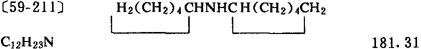 释义 | Dicyclohexylamine [十二氢二苯胺;十二氢联苯胺;联环己胺;N-Cyclohexylcyclohexanamine;Dodecahydro diphenylamine] GW 82512 TW 96010 M.I.11,3085 性状 无色或浅黄色油状液体。微具特殊气味。能与醇、醚、苯等相混溶,微溶于水。mp 0-1℃;bp10 119-120℃/1.333kPa; 注意事项 该品具有腐蚀性,能引起烧伤大量使用应穿戴适当的防护服、手套和防护镜或面罩。 |