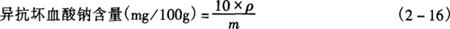 式中 V——滴定消耗0.1mol/L碘标准溶液,mL 10.81——1mL0.1mol/LI2标准溶液相当于10.81mgD-异抗坏血酸钠(含1分子水) 三、食品中D-异抗坏血酸钠的含量测定 1.试剂和溶液 1.1 乙腈 色谱纯。 1.2 偏磷酸 优级纯。 1.3 4%偏磷酸溶液 取偏磷酸40g,加水溶解成1000mL,如产生不溶物,需过滤,放冷处保存。 1.4 2%偏磷酸溶液 取偏磷酸20g,加水溶解成1000mL,如产生不溶物,需过滤,放冷处保存。 1.5 标准液的制备 准确称取异抗坏血酸钠10mg,放入100mL棕色容量瓶中,用2%偏磷酸溶液溶解并加至刻度,作为标准液(此液1mL相当于异抗坏血酸钠100μg)。准确吸取标准液1mL、2mL、3mL,分别加入10mL棕色容量瓶中,并用2%偏磷酸溶液稀释至刻度。此液作为标准曲线用标准液(此液分别相当于异抗坏血酸钠10μg/mL、20μg/mL、30μg/mL)。 2.测定方法 2.1 液体和半固体食品 一般准确称取相当于1~5mg异抗坏血酸的样品20g以下,放入100mL棕色容量瓶中,再加入等量的4%偏磷酸溶液,然后加2%偏磷酸溶液至刻度。用0.45μm滤膜过滤器过滤,将此液作为样品溶液。 2.2 粉状和固体食品 一般准确称取相当于1~5mg异抗坏血酸的样品10g以下,放入100mL棕色容量瓶中,加入等体积的4%偏磷酸溶液,再加入60mL2%偏磷酸溶液成悬浊液。然后用超声波振荡提取15min,用No.5C滤纸过滤,用100mL棕色容量瓶接收滤液。容器和残渣用10mL2%偏磷酸溶液分两次冲洗,洗液与滤液合并,再加2%偏磷酸溶液至刻度。此液用0.45μm滤膜过滤器过滤,滤液作为样品溶液。 3.测定方法 3.1 测定条件 应用具有紫外分光检测器的高压液相色谱仪,按下述条件进行测定。 填充剂:化学结合型硅胶。 色谱柱:内径约为4.6mm,长约250mm 柱温:50℃ 洗脱液:乙腈·水·乙酸(83:15:2) 流速:3.0mL/min 测定波长:254nm 注入量:15μL 3.2 标准曲线 分别吸取15μL标准曲线用标准液,注入高压液相色谱仪中。用所测得的峰高,绘制成标准曲线。 4.分析结果的表述 准确吸取15μL样品溶液,注入高压液相色谱仪中。所测得峰高,从标准曲线上求出样品溶液中异抗坏血酸钠的浓度(μg/mL),然后按式(2-16)计算样品中异抗坏血酸钠的含量(mg/100g)。