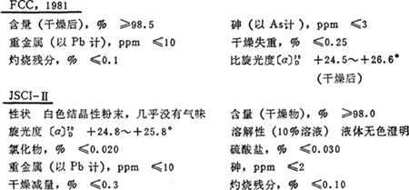 释义 | L-天冬氨酸 结构式 HOOCCH2CH(NH2)COOH 分子量 133.10 性能 白色斜方板状晶体或结晶性粉末,无臭,稍有酸味。相对密度1.6613,熔点270~271℃。在烃类存在下,与无机酸水溶液加热亦稳定。难溶于水(0.42g/100mL,20℃),易溶于热水(35g/100mL,97℃),溶于酸、碱及食盐中,不溶于乙醇和乙醚。属非必需氨基酸。 天然品广泛存在于各种动植物蛋白中,甜菜的糖蜜中含量特别丰富。毒性:GRAS(FDA,§172,320,1985)。 质量规格(FCC,1981;JSCⅠ-Ⅱ) 用途 营养增补剂。添加于各种清凉饮料。医药上用作氨解毒剂,肝功能促进剂。 化妆品中用作营养添加剂。 |