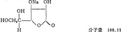 性能 白色至黄白色晶体或结晶性粉末,无臭,味微咸。分解温度218℃。2%水溶液pH值6.5~8.0。干燥状态下较稳定,吸潮后及在水溶液中缓慢氧化分解。遇光颜色转深。极难溶于乙醇。比L-抗坏血酸易溶于水(62g/100mL)。