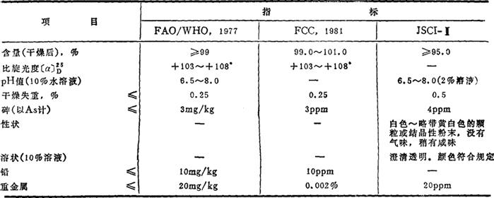 质量规格(FAO/WHO,1977;FCC,1981;JSCI-Ⅱ)