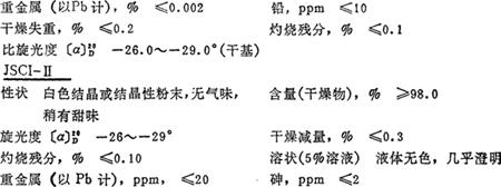 质量规格(FCC,1981;JSCI-Ⅱ)