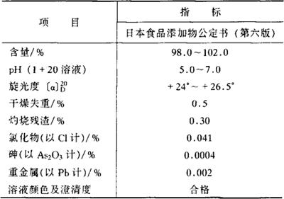释义 | L-赖氨酸-L-天门冬氨酸盐 编码 GB 16.000 化学结构 C10H21O6N3 相对分子质量 279.29 性状 白色粉末,无臭或稍臭,有特异味,易溶于水,难溶于乙醇、乙醚。L-赖氨酸因易吸收空气中的碳酸气变成碳酸盐,具有潮解性,难以处理。若将其与具有呈味性的天门冬氨酸结合成盐,则使用更为方便。 制法 由游离的L-赖氨酸中加入L-天门冬氨酸而制得。 质量标准 鉴别方法 (1)取0.2%本品溶液5mL,加水合茚三酮试液(0.2%水溶液)1mL,加热3min应呈紫色。 (2)取本品0.1g,加水溶解并定容至50mL。取此溶液5μL作为试样液。用正丁醇∶冰乙酸∶水的混合液(5∶1∶2)作为展开剂,用色谱分析用2号滤纸展开至溶剂上升30cm,风干后再于100℃干燥20min,用2%水合茚三酮丁醇液喷雾,于100℃加热5min显色,在自然光下观察,以L-天门冬氨酸钠为对照。 毒理学依据 同L-赖氨酸盐酸盐。 使用 氨基酸强化剂。主要作为L-赖氨酸强化用,也可用于清凉饮料及面包等的调味。 使用范围及使用量 我国《食品营养强化剂使用卫生标准》(GB 14880-94)规定:其使用范围和使用量同L-赖氨酸盐酸盐。 本品1.910g相当于L-赖氨酸1g。或本品1.529g相当于L-盐酸赖氨酸1g。 |