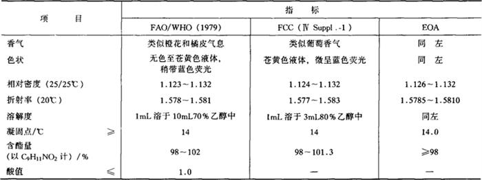 释义 | N-甲基邻氨基苯甲酸甲酯 编码 FEMA 2718 化学结构 C9H11O2N 相对分子质量 165.19 性状 带有淡蓝色荧光的淡黄色液体,沸点256℃,闪点高于110℃。不溶于水和甘油,溶于丙二醇、大多数有机溶剂、固定油和矿物油。 制法 由邻氨基苯甲酸甲酯进行甲基化或由N-甲基氨基苯甲酸进行酯化反应而制备。 质量标准 鉴别方法 香气鉴定。 毒理学依据 GRAS FEMA 2718。 使用 使用范围及使用量 (1)我国《食品添加剂使用卫生标准》(GB 2760-1996)规定:可按生产需要适量用于配制各种食品香精。 (2)FEMA规定:最高参考用量为软饮料,5.1mg/kg;冰淇淋、冰制食品,3.0mg/kg;糖果,18mg/kg;焙烤食品,17mg/kg;果冻,4.0mg/kg。 (3)实际使用参考用于葡萄、桃子、柑橘等食品香精。 |