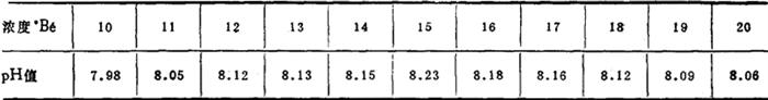 注:上表中是真空罐排出的苦卤,测定pH值使用锑电极。