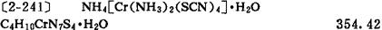 释义 | Reinecke salt monohydrate [一水合雷氏盐;四硫氰基二氨络铬酸铵盐;赖纳克氏盐;利英纳克盐;二氨基四硫代氰酸铬铵;Ammonium reineckate;Ammonium tetrathiocyano diammonochromate(Ⅲ)] M.I.11,8135 性状 暗红色固体。溶于热水和醇,难溶于冷水。 注意事项 使用时应避免吸入本品的灰尘,避免与眼睛及皮肤接触。应密封保存。 |