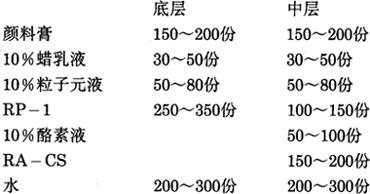 释义 | RP-1软革涂饰剂 【主要成分】 丙烯酸酯类共聚物乳液。 【产品质量标准】 企业标准(四川泸州皮革化工厂)。 外观: 白色带蓝光乳液 固含量(%): 36~38 pH值: 4~6 未反应单体(%): <2 【功能与特点】 乳液分散性和稳定性好,粘着力强,耐曲挠,渗透适中,具备填充性。涂层光亮,手感光滑,具较好的抗水性。适合于各种软革的底中层涂饰,特别适用于剖层革的涂饰。 【用途和用法】 适合于各类软革,尤其是剖层革的底中层涂饰。 应用参考配方举例(猪剖层革) 【使用注意事项】 (1)配方可根据坯革情况适当调整。 (2)若须调pH值,宜用稀碱液调整;严禁遇强电解质和有机溶剂,以免变质。 【包装贮存】 参照RA-CS树脂(4-2-013)。 【研制单位】 中科院成都有机化学研究所。 【主要生产厂家】 四川泸州皮革化工厂。 |