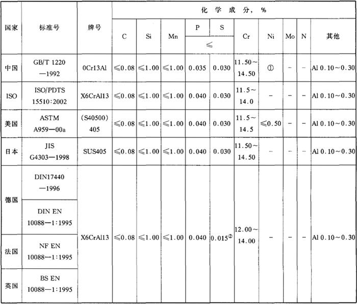 在铁素体型不锈钢0Cr13中加入0.10%~0.30%的铝炼制而成。由于加入铝,使钢的抗氧化性能得到提高。其特点是从高温下冷却后不产生显着硬化。
