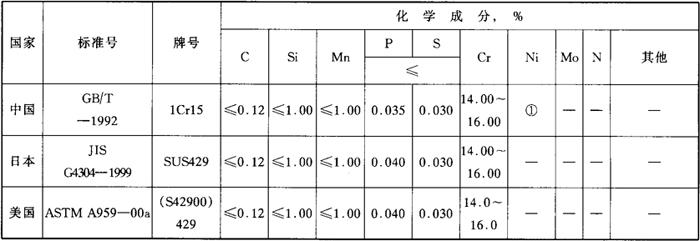 注:①允许含有≤0.60%的Ni。