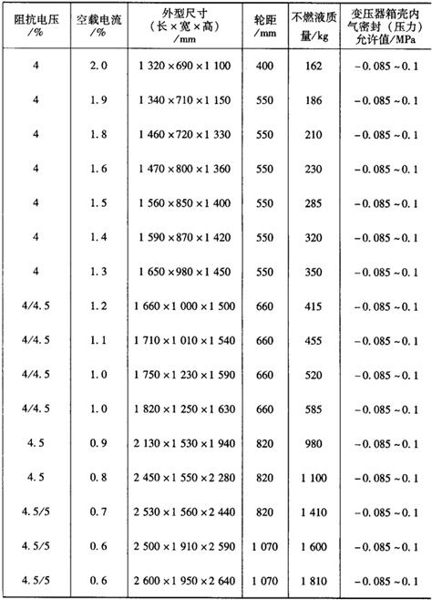 释义 | S18系列密封式充不燃液电力变压器 S18系列密封式充不燃液变压器使用了不燃性合成绝缘液(卤素碳化合物)作为冷却绝缘介质。产品满足防火要求,安全可靠,适用于额定频率50Hz、电压等级6~10kV的配电网。本产品使用铜绕组、无储油柜,但有调整气垫结构,采用不吊检器身结构、设有压力监视和保护装置。 本产品符合国家标准GB1094、1~1094.5-85的要求。其技术数据见表4-10。 表4-10 S18系列密封式充不燃液电力变压器技术数据 |