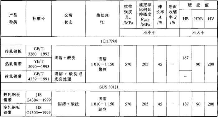 释义 | S30120 1Cr17Ni8 (1)化学成分 表3-71 国内外相应牌号及化学成分 (2)力学性能 表3-72 主要产品热处理后的室温力学性能 (3)主要特性和用途 此钢的切削加工和弯曲加工性能比0Cr19Ni9钢好,加工硬化性处于0Cr19Ni9与1Cr17Ni7钢之间。 用于制造弹簧、餐具、卷曲加工的零部件、建筑、车辆上的装饰物件等。 |