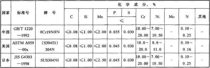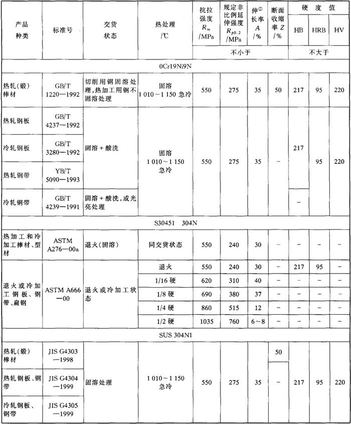 释义 | S30458 0Cr19Ni9N (1)化学成分 表3-19 国内外相应牌号及化学成分 (2)力学性能 表3-20 主要产品热处理后的室温力学性能 注:①ASTM标准试样标距为Lo=50mm。 (3)主要特性和用途 向0Cr19Ni9钢中加入0.10%~0.25%的氮炼制而成。由于加入氮,使钢的强度提高,而塑性还不降低,因此,可以使零件的厚度减少。同时,钢的耐蚀性也有所改善。 主要用于制造既要求耐腐蚀又要求具有一定强度的结构件等。 |