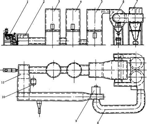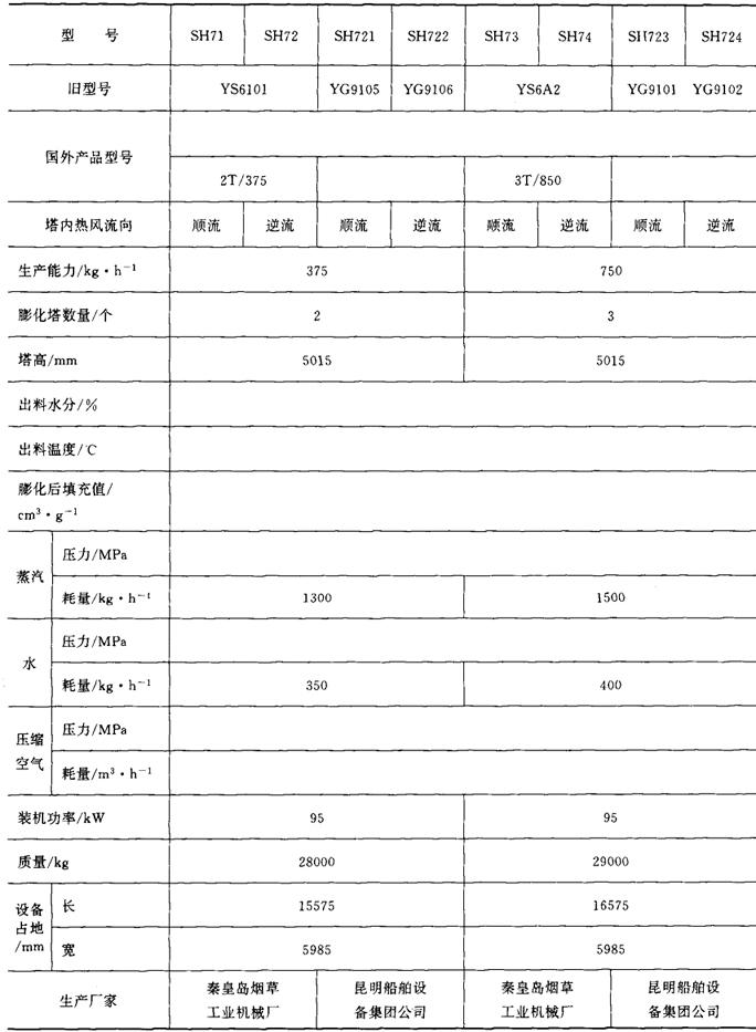 释义 | SH型塔式梗丝膨化装置 1.结构特点 (1)SH型塔式梗丝膨化装置主要由落料器、进料振动输送机、喷料装置(包括蒸汽喷嘴、温图利管、热风混合装置等)、膨化塔、切向分离器、旋风除尘器、风道系统、热交换装置、供水箱、供水及蒸汽管路系统等部分组成。 (2)梗丝膨化的自动控制由两个层次构成。模拟量的控制由MICON微处理器完成,主要控制温度、湿度、流量等。开关量的控制则由SIMATIC可编程控制器来完成,用以完成阀门、电机等简单的开关。MICON与SIMATIC之间有信号联系。 2.主要技术参数 SH型塔式梗丝膨化装置主要技术参数见表9-2-30所示。 图9-2-30 SH型塔式梗丝膨化装置平面布置图 1-振动输送机 2-加热器 3-第-膨胀塔 4-第二膨胀塔 5-第三膨胀塔 6-切向分离器 7-旋风除尘器 8-热风管道 9-风机 10-水箱 11-混合箱 3.外形尺寸及安装图示 SH型塔式梗丝膨化装置的设备外形及安装图示见图9-2-30所示。 4.生产厂家 见表9-2-30。 表9-2-30SH型塔式梗丝膨化 注:顺流、逆流式是指观察者俯视整机时,热风流向为顺时针方向或逆时针方向,对技术参数无任何影响。 装置主要技术参数 |