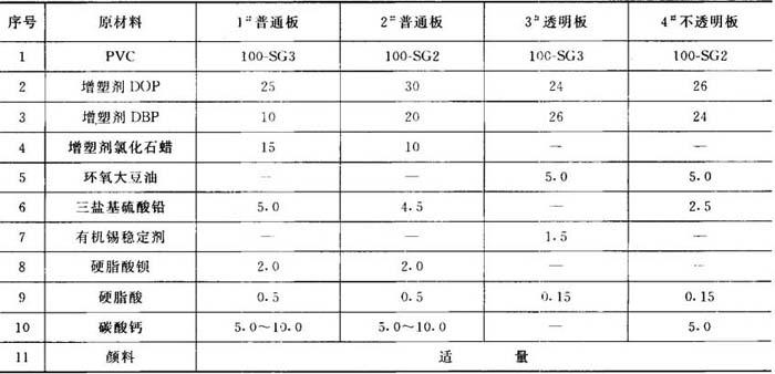 SPVC板材中稳定剂的用量比RPVC少,一般有3份即可。加入碳酸钙是为了软板刚离开机头时较硬,还可降低成本,但不能加入太多.否则防腐方面就达不到要求了。