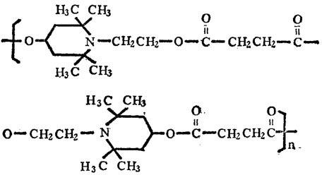 释义 | Tinuvin 622 【结构式】: 瑞士Ciba-Geigy公司开发的新型受阻胺类光稳定剂,具有如下化学结构: 【释文】: 该品为聚合型光稳定剂,分子量>2000。有效N含量4.9%。粉末状物,熔点130~145℃。适用于聚丙烯、聚乙烯、聚酯和软质聚氯乙烯等塑料。一般用量为1~2%。1982年美国食品和药物管理局(FDA)许可本品用于接触食品的塑料。 |