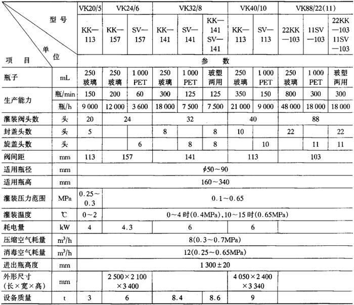 VK系列灌装封盖机主要技术参数见表4-6-6。