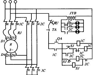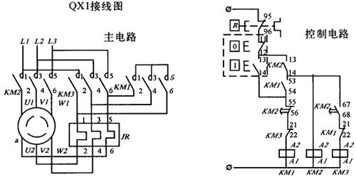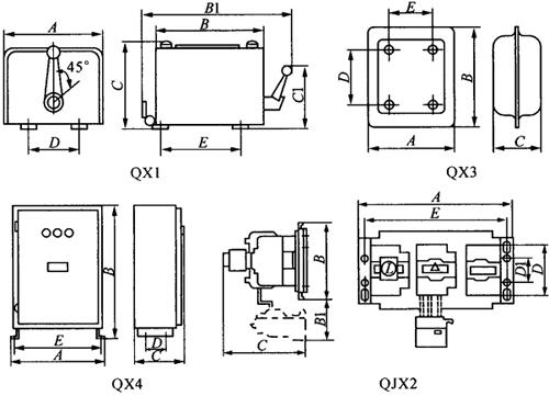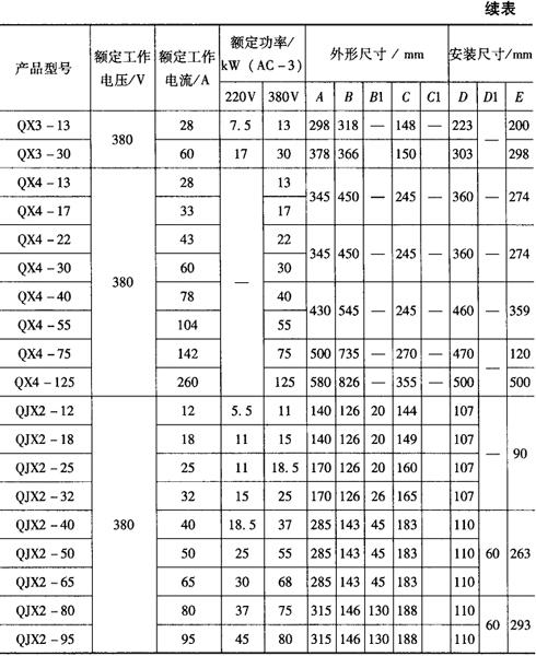 释义 | Y/△起动器 1.适用范围 Y/△起动器适用于交流50Hz或60Hz,额定绝缘电压为660V,在AC-3使用类别下额定工作电压为380V时控制功率至80kW的三相鼠笼式感应电机,Y/△起动器为电动操作时,接线可自动转换,可遥控电动机起动、停止,并具有过载及失压保护。Y/△起动器一般用于空载或轻载起动的中、小型笼式电动机。 2.常用Y/△起动器结构特征 (1)QX1 Y/△起动器是由三个结构相同的触头元件及一个定位机构的组成。并具有薄钢板的外壳,由凸轮操作其分断,由弹簧控制其闭合。 (2)QX3 Y/△起动器是由交流接触器、时间继电器和热继电器组装而成。电动机开始由星形接法运转,通过时间继电器自动将Y换接成△连接,使电路正常运转。热继电器和交流接触器在过载和失压时,可以自动断开电路。 (3)QX4 Y/△起动器由3台交流接触器、1台热继电器、1台时间继电器、3只按钮(并作指示灯)等元件组成,采用自动控制方式,在0.4~0.6s内可以自动调节起动,并有过载及失压保护装置。 (4)QJX2 (LC3-D)Y/△起动器一般由三台交流接触器,一只空气延时头、一只辅助触头组成,安装在一块底板上,配以适当导线。 3.常用Y/△起动器接线图。 常用Y/△起动器接线图见图1-83。 QX4接线图 QX3接线图 QX1接线图 QJX2接线图 图1-83 常用Y/△启动器接线图 4.常用Y/△起动器产品型号及主要技术参数 常用Y/△起动器产品型号及主要技术参数和外形安装尺寸见图1-84和表1-115。 图1-84 常用Y/△起动器外形及安装尺寸 表1-115 常用Y/△起动器主要技术参数及安装尺寸 |