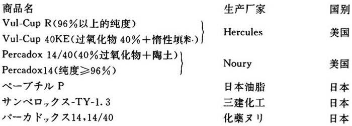 释义 | α,α-双(叔丁过氧基)二异丙苯,1,4,-双(叔丁过氧基)二异丙苯 【结构式】: 【释文】: 性质 白色结晶(纯度95%)或白色粉末(40%过氧化物+惰性填料)。分子量338。理论活性氧量9.45%。活化能151.62kJ/mol。分解温度:182℃(半衰期1min)、118~120℃(半衰期10h)。半衰期:125h(100℃)、5.2h(125℃)。熔点50℃。燃点191℃。闪点115℃。不溶水,部分溶于乙醚、氯仿、苯、己烷、四氯化碳。 用途 本品可作为聚乙烯、不饱和聚酯、硅橡胶、丁腈橡胶、乙丙橡胶和聚氨酯用交联剂。交联效率高,制品的耐热性、低温屈挠性及耐压缩变形性都较好。 毒性 本品低毒,大白鼠经口LD50为2300mg/kg体重。大白鼠和小白鼠在空气中(100mg/m3或6000ppm)吸入染毒(125F×4h)时,未见影响。本品对皮肤和眼睛的刺激性极轻。 国外生产厂 |