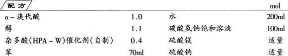 释义 | α-溴代酸酯 注:α-溴化酸有α-溴乙酸、α-溴丙酸;醇类有正丁醇、异丁醇、正戊醇、环己醇等;HPA-W是一种具有Kaggin结构的磷-钒-钨体多杂多酸。 制法 在250ml三颈烧瓶中加入1.0mol α-溴代酸和1.1mol醇、0.4g催化剂和70ml苯,装上油水分离器,并在分水器上部装上回流冷凝器。将烧瓶置油浴上加热,保持油浴在140℃左右,加热回流3~4h,共分出15~18ml水,停止反应。将反应混合物移至500m1分液漏斗中,加100ml水,激烈振荡,分去上部水层,酯层再用100ml饱和NaHCO3溶液洗涤两次,然后再用100ml水洗涤,加入无水MgSO4+Na2SO4(1∶1)干燥过夜,过滤。将滤液用250ml蒸馏瓶进行蒸馏(或减压蒸馏)收集所需的馏分,对前馏分进行第二次蒸馏,收集同样所需馏分,即为产品,计算产率,测折射率。 α-溴代酸酯对皮肤、黏膜具有强烈的刺激性和腐蚀性,在军事上用于制造催泪弹、毒气弹。它还具有抗血吸虫、驱钩虫、杀打线虫等作用。α-溴代酸酯是合成β-羟基酸酯的重要原料。 |