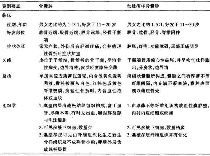 字词 | 一、骨囊肿与动脉瘤样骨囊肿的鉴别 |