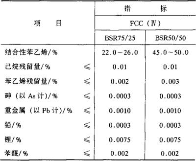| 释义 | 丁苯橡胶 别名 丁二烯-苯乙烯共聚物、BSR50/50、BSR75/25 编码 GB 07.002 化学结构 为丁二烯、苯乙烯共聚物。按所含丁二烯和苯乙烯比例的不同,分为75/25和50/50两种。 性状 不完全溶于汽油、苯、氯仿。极性小,粘附性差,耐磨性及耐老化性较优,耐酸碱。相对密度0.9~0.95。BSR 50/50胶乳的pH为10.0~11.5,固形物含量为41%~63%。BSR75/25胶乳的pH为9.5~11.0,固形物含量为26%~42%。 制法 (1)液体丁苯橡胶以丁二烯、苯乙烯为原料,加入脂肪酸皂乳化剂、过硫酸盐催化剂,必要时加入适量的分子调节剂、适量的速止剂制成乳化共聚体。 (2)固体丁苯橡胶以丁二烯、苯乙烯在己烷溶液、丁基锂催化剂作用下共聚,加热除去挥发物制得。 质量标准