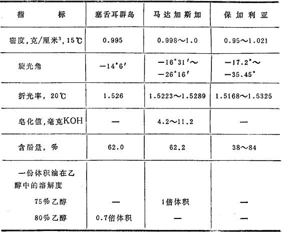表7.3中列有根据ГОCТ9360-60的规定,丁香罗勒油的质量指标。