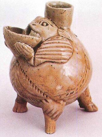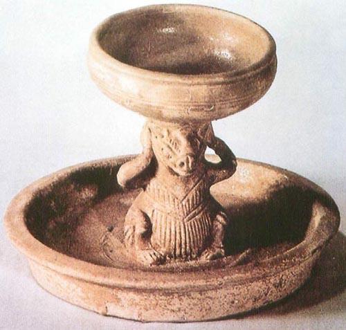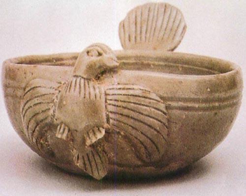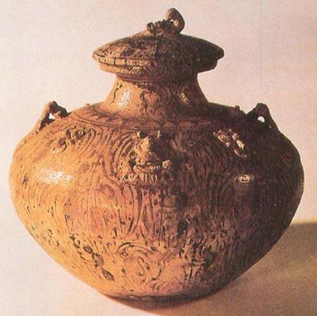 释义 | 三国时期的瓷器 早期青瓷的主要产地在浙江省的上虞、余姚、宁波、绍兴一带,这里是古越人居住的地方。唐代设越州,以州名定窑名,因此,唐代首先将这一带窑群定名为越窑。 三国时(220~265年)的越窑瓷器胎质坚致,优质瓷的胎子呈淡灰色;釉子青亮光润,说明当时的工匠已能很好地掌握还原气氛了。这时器物纹饰较少,只有划或印的网格纹、弦纹、水波纹等,贴塑、模印纹则比较丰富,如在谷仓上贴塑出人物、动物、飞禽、龟蛇、佛像、建筑物、铺首等。另外还有一些雕塑艺术造诣很高的瓷器作品,如捧钵蛙式水注(彩版3)、鸽形杯(彩版4)、熊灯(彩版5)、兽柄虎子、跪羊烛台等。 3.青釉蛙型水注 三国 4.青釉鸽形杯 三国 5.青釉熊形灯 三国 现藏于南京博物馆的南京市雨花台长岗村东吴末年墓出土的青釉釉下褐彩绘盘口壶(彩版6),是目前发现最早的釉下彩绘瓷器。这件盘口壶有圆弧形盖,回首鸟形纽,壶身为盘口束颈,鼓腹平底。胎子灰白色,釉色青中闪黄。采用堆贴雕塑与彩绘相结合的装饰方法,间隔贴塑铺首、佛像及双首连体鸟形系;彩绘人首鸟身的仙人、异兽、持节羽人、仙草、云气等幻境,反映了当时人们的思想观念。这件釉下彩绘瓷,是在成形的胎子上用含铁元素的颜料绘画纹饰后,罩青釉入窑高温一次烧成的,在中国瓷器史上有划时代的意义。它第一次变釉色装饰为彩绘装饰,为唐代长沙窑、宋代磁州窑及以后的青花、釉里红等釉下彩绘瓷奠定了技术基础。 6.青釉釉下褐彩彩绘盘口壶 三国 三国时常见的器型有:碗、盘、碟、盒、罐、洗子、盘口壶、钵、盆、水盂、虎子、唾壶、槅、耳杯及为殉葬用的灶、鸡笼、犬、羊、猪圈、谷仓等明器(1)。现藏于中国历史博物馆的三国吴墓出土的青瓷兽柄虎子,腹部刻有“赤乌十四年(251年)会稽上虞师袁宜作”款,另一面正中刻“制宜”二字。前面提到的青瓷熊灯,底部刻“甘露元年五月造”(265年)款,是已知最早的几件带年款的瓷器。 |