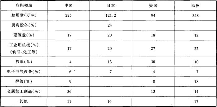 释义 | 不锈钢的应用领域和需求进一步扩大 不锈钢应用领域很多,表4-2表示中国、日本、美国、欧洲等地不锈钢的应用领域。由表可以看出,日本在厨房设备领域使用不锈钢最多,其次是建筑和工业用机械;美国在汽车领域使用不锈钢最多,其次是工业用机械和建筑业;欧洲则在工业用机械领域使用不锈钢最多,其次是焊管和金属制品加工;中国则是在金属制品和焊管领域中使用不锈钢最多,其次是工业用机械和建筑业。总之不管在哪个地区,不锈钢在建筑、运输、厨房、电气、工业用机械方面使用量很大,特别是最近强调材料长寿命化、节能、环保和信息化,因此不锈钢可能会扩大在下列领域中的使用:①从环保角度,为了抑制产生二氧化碳,在垃圾高温焚烧装置、液化天然气发电和采用煤炭的高效率发电装置中,将更多地使用耐热、耐高温腐蚀性能优良的不锈钢,另外本世纪初电动汽车将进一步实用化,因此期待在汽车用电池中采用更多的不锈钢。特别从水质保全的观点来看,上下水管道及水处理装置将更多采用耐蚀性优良的不锈钢。②在长寿方面,欧美等国已根据LCC(寿命价格比)评价方法,将会在桥梁、高速公路、隧道等基础设施中更多地采用不锈钢和不锈钢筋。日本在建筑物方面过去设计寿命为20~30年,现在已向100年进军,因而会采用更多的不锈钢。③最后在信息化方面,要求高精度高性能的材料,例如移动电话等设备要求采用高强度、弹性和无磁等特性的材料,不锈钢能满足这些要求,另外制造半导体和各种集成电路板的设备,由于不锈钢有干净和耐久性的特性,因而会起重要作用,今后需求量将会进一步扩大。 表4-2 各国不锈钢的主要应用领域 注:中国、美国、欧洲金属加工制品包括厨房设备用不锈钢。 |