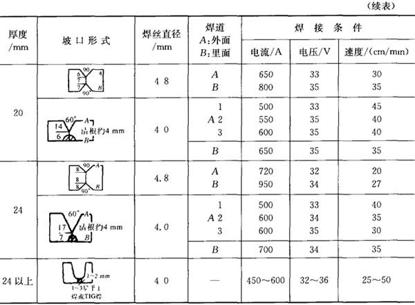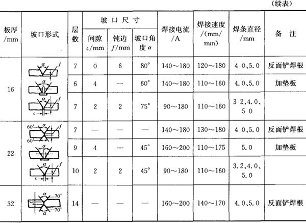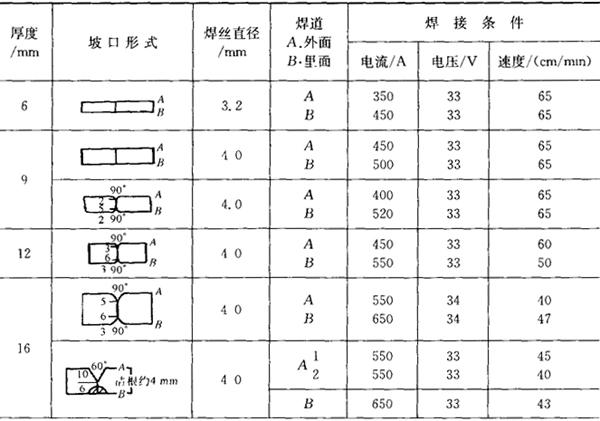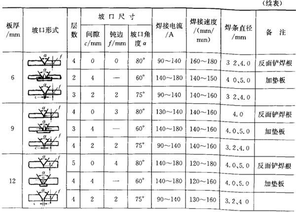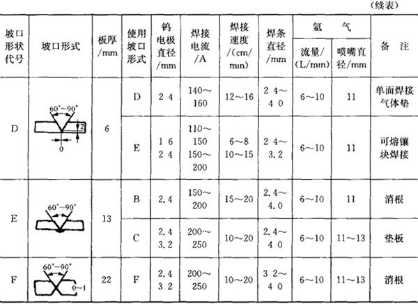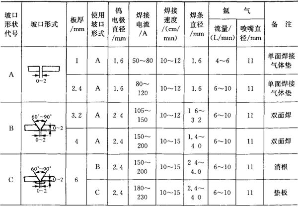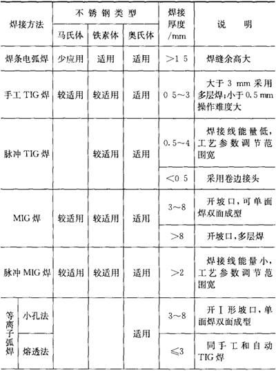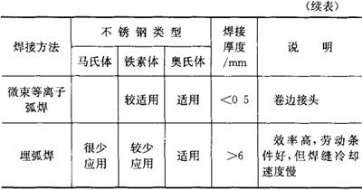 释义 | 不锈钢的焊接工艺 1.焊接方法 常用适于焊接不锈钢的弧焊方法见表7.4-1。 表7.4-1 常用适于焊接不锈钢的弧焊方法 (1)焊条电弧焊 厚度2mm以上的不锈钢板用焊条电弧焊居多。焊条的选用可根据母材的材质型号,选用与母材成分相同或相近的焊条。注意其熔敷金属含碳量不得高于母材的焊条。焊接施工需注意下列事项: ①焊条焊前须按规定温度烘干。 ②焊接位置尽量采用平焊位置,当立、仰焊时,应选比平焊较小直径的焊条。 ③不允许焊条在非焊接部位引弧,收弧时需填满弧坑,或在引出板上收弧。 ④采用短弧快速焊,弧长一般在2~3mm,不允许焊条做横向摆动。 ⑤焊道清渣时,必须用不锈钢钢丝刷,不准使用碳钢钢丝刷。 ⑥多层焊时,层间温度不宜过高,可待冷却到60℃以下,再清理焊渣和飞溅物,对工件表面质量要求高时,可在坡口两侧涂上石灰水或专用防飞溅剂。 ⑦有必要时,焊后进行固溶处理或消除应力处理。 固溶处理参考工艺:加热至1000~1150℃,以2min/mm板厚确定保温时间急速冷却。 消除应力处理参考工艺:加热至900℃左右,以2min/mm板厚确定保温时间后,在空气中冷却。 (2)氩弧焊 氩弧焊保护效果好,焊缝成分易控制,热影响区晶粒长大倾向小;焊后不用清渣,可全位置焊接和机械化焊接,是奥氏体不锈钢较为理想的焊接方法。 TIG焊最适合3mm以下不锈钢薄板的焊接;厚度小于0.5mm的薄板应采用脉冲TIG焊;厚度大于3mm的宜采用开坡口或多层多道焊;板厚大于13mm不宜采用TIG焊,主要是成本高。 板厚大于6mm的不锈钢宜采用射流过渡的MIG焊,焊丝直径可选Φ0.9~1.6mm,只适合平焊和横焊。薄板宜采用短路过渡,可全位置焊接。焊丝直径可选Φ0.8mm、Φ0.9mm和Φ1.2mm。 为保证背面焊道的质量,注意底层焊时,宜在背面附加氩气保护。 (3)埋弧焊 适用于中厚板不锈钢的焊接,有时也用于薄板。由于埋弧焊热输入大,熔深大,冷却速度慢,应防止焊缝中心区热裂纹和热影响区耐蚀性的降低。因此,对热裂纹敏感的纯奥氏体不锈钢,一般推荐采用埋弧焊。 (4)等离子弧焊 厚度10~12mm以下奥氏体不锈钢采用等离子弧焊是比较理想的焊接方法。0.5mm以下薄板采用微束等离子弧焊最为合适。因为等离子弧热量集中,利用小孔效应可不开坡口,不加填充焊丝单面焊一次成形,尤其适合奥氏体不锈钢钢管的纵缝焊接。 2.焊前准备 根据焊接方法、材料厚度、结构要求开出坡口。坡口两侧40mm需彻底清理,清除全部碳氢化合物及其他污染物。定位焊用焊条应与焊接用焊条相同。 3.焊接材料 表7.4-2为部分奥氏体不锈钢弧焊用焊接材料。表7.4-3为铁素体不锈钢焊接材料。表7.4-4为马氏体不锈钢焊接材料的选用。表7.4-5为几种不锈钢用药芯焊丝。 表7.4-2 部分奥氏体不锈钢弧焊用焊接材料 表7.4-3 铁素体不锈钢焊接材料选用 表7.4-4 马氏体不锈钢焊接材料及选用 表7.4-5 几种不锈钢用药芯焊丝选用参考 焊接铁素体不锈钢的材料可用同质的铁素体型或异质的奥氏体型。前者焊缝颜色与母材相同,膨胀系数和耐蚀性与母材相近,但焊缝抗裂性不高。采用异质奥氏体焊材焊缝的抗裂性高,但不能进行预热和焊后热处理。 4.焊接工艺参数 表7.4-6为焊条电弧焊对接焊坡口形式及焊接工艺参数。 表7.4-6 焊条电弧焊对接焊坡口形式及焊接工艺参数 表7.4-7为埋弧焊的坡口形式及焊接工艺参数。 表7.4-7 埋弧焊的坡口形式及焊接工艺参数(见上表) 表7.4-8为手工TIG焊对接平焊坡口形式及焊接工艺参数。 表7.4-8 手工TIG焊对接平焊坡口形式及焊接工艺参数 表7.4-9为TIG焊管子对接与管板焊接工艺参数。 表7.4-9 TIG焊管子对接与管板焊接工艺参数 表7.4-10为脉冲TIG焊管子对接与管板焊接工艺参数。 表7.4-10 脉冲TIG焊管子对接与管板焊接工艺参数 表7.4-11为对接脉冲MIG焊焊接工艺参数。 表7.4-11 对接脉冲MIG焊焊接工艺参数 注:脉冲频率50Hz,焊丝为0Cr18Ni9。 表7.4-12为不锈钢大电流等离子弧焊工艺参数。 表7.4-12 不锈钢大电流等离子弧焊工艺参数 表7.4-13为不锈钢薄板小电流等离子弧焊工艺参数。 表7.4-13 不锈钢薄板小电流等离子弧焊工艺参数 表7.4-14为不锈钢超薄板微束等离子弧焊工艺参数。 表7.4-14 不锈钢超薄板微束等离子弧焊工艺参数 |