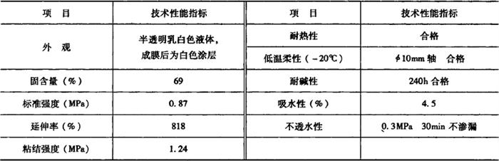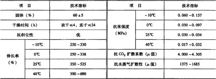 (三)JJ-960丙烯酸弹性防水涂料 1.JJ-960丙烯酸弹性防水涂料的特点 JJ-960丙烯酸弹性防水涂料,系以进口的交联型纯丙烯酸乳液为基料,掺入多种适量的助剂及钛白颜料经精加工而成,是一种单组分弹性乳胶型防水材料。 这种防水涂料具有优良的韧性和抗紫外线性能,不仅能抵抗基层的变形和开裂,而且耐久性好;适应温度的范围较广,在这个范围内都能保持其优良的延伸率;具有较强的抗污染性、抗化学腐蚀性和抗风吹雨淋的能力;具有透气呼吸功能,可防止潮气在墙壁和屋顶内聚积;对各种基材均具有较强的粘附力;涂料本身为一种水性产品,无毒安全,施工简便。 2.JJ-960丙烯酸弹性防水涂料的适用场合 JJ-960丙烯酸弹性防水涂料主要适用于屋面、墙面、游泳池、网球场地等的防水。 JJ-960丙烯酸弹性防水涂料的技术性能见表10-73。 表10-73 JJ-960丙烯酸弹性防水涂料的技术性能