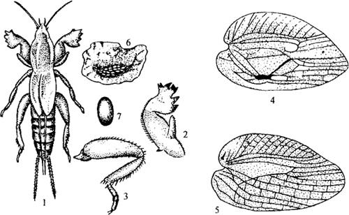 释义 | 东方蝼蛄 【学名】 Gryllotalpa orientalis Burmeisler 【别名】 小蝼蛄、土狗子、拉拉蛄。 【分布与为害】 是世界性害虫。中国各地都有分布,但以南方受害较重。食性杂。为害多种花木、幼根、根茎,切口常参差不齐,甚至有纤维粘连。尤其是一、二年生草本及扦插苗,被咬幼苗,常枯萎而死。蝼蛄在土表层来回串行,造成纵横隧道,使苗根部与土层脱离,失水枯干而死。 【形态特征】 成虫体长30~50毫米。前胸宽6~8毫米,淡黄褐色。腹部近纺锤形。全体密被细毛。头部圆锥形。触角丝状。前胸背板呈卵圆形,中央有1凹陷,暗红色斑明显,斑长4~5毫米。前翅短,仅达腹部中部,后翅长,超过腹部末端。雄性前翅后缘中部,靠里区域上Cu2脉,呈角状弯曲,并与A脉愈合组成粗大坚硬的音挫。雌性前翅Cu2弯曲度较缓,折角状不明显,且无愈合A脉的现象。前足特化为开掘足,后足胫节背侧有刺3~4根,腹末具1对尾须(图5-46)。卵椭圆形,长2.8毫米,初产时乳白色,渐变黄褐色,孵化前暗紫色。初孵若虫乳白色,腹部漆红色或棕色,半天后变成灰褐色,似成虫。复眼淡红色,无翅或仅有翅芽。 图5-46 东方蝼蛄 1.成虫 2.前足 3.后足 4.雌成虫前翅 5.雄成虫前翅 6.卵堆 7.卵 【生活习性】 1年1代。11月份以成虫或若虫在土中越冬。翌年4月上旬开始活动上升到土表。越冬代成虫于次年5月中、下旬陆续产卵。产卵前先在腐殖质多的土层筑土室,产卵其中。1个土室内有卵30~50粒,每雌虫可产250粒。越冬代若虫在4月上旬为害,5月上、中旬羽化为成虫,并交尾产卵,6月为产卵盛期。卵期21~30天。初孵若虫有群集性,3~6天后分散为害。若虫经过5次蜕皮变成虫。成虫昼伏夜出,有较强趋光性,嗜食马粪或在有机肥堆集处群集。喜在潮湿土壤中生活,雨后活动频繁,有“蝼蛄跑湿,不跑干”之说。在春秋雨季,平均气温和在20厘米深处的土温均达到16~20℃时,蝼蛄猖獗为害,故一年中有2个为害高峰。 【防治方法】 (1)物理防治。在成虫发生期,点黑光灯诱杀成虫,雨前无风,闷热天气点灯诱杀效果最佳。 (2)园艺防治。在蝼蛄发生多的地区,在其附近挖坑用马粪、牛粪拌草、麦麸置坑中,诱杀成虫和若虫。在产卵盛期,挖土5~10厘米灭卵。 (3)药物防治。在蝼蛄发生较严重地区,用0.5千克敌百虫加水10千克,喷种子,晾干后播种,可防止其为害。虫口密度较大,为害率上升时,喷50%辛硫磷乳油1000倍液。 香石竹上的害虫除以上所述外,尚有小地老虎、甘蓝夜蛾、银纹夜蛾、桃蚜、棉蚜、豌豆潜叶蝇、二斑叶螨等。参看本书其他花卉上虫害。 |