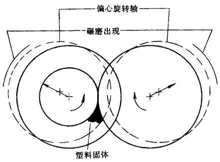 释义 | 两根螺杆的啮合 在任何相互啮合的双螺杆挤出机中塑料的运动是这样的结果,即在一根螺杆根部与另一根螺杆顶部的交界处和料筒壁之间形成了料腔。这种料腔向料筒末端延伸,在此处,排出的塑料是挤出机的产量。图3-9表示了螺杆槽的结构,用类似于单螺杆挤出机的方式对螺槽展开分析。 图3-9 双螺杆挤出机限制模式示意图 (a)螺杆俯视图 (b)螺杆正视图 双螺杆挤出机设计的实际生产效率是拖曳流动的一种结果,并不发生明显效应的压力流,然而,这种压力流效还是要影响双螺杆挤出机的生产产率和机头压力。 图3-10表示双螺杆挤出机拖曳流和压力流速度分布曲线。成型料腔中流动的量是受到限制的。 图3-10 双螺杆挤出机拖曳速度、压力速度和净速度曲线 与单螺杆挤出机不同,剪切塑料不影响挤出量,塑料的最大剪切由原来的料筒壁处转移到螺杆根部。 如图3-11所示,当螺棱表面与螺杆根部啮合时,塑料固体被旋转的摩擦程度超过单螺杆挤出机的许多倍。如图3-11所示,反向旋转的双螺杆挤出机这种效应更明显。此处,压缩效应类似于双辊筒所产生的碾磨效应。 图3-11 反向旋转双螺杆挤出机棱面塑料固体碾磨 双螺杆挤出机重要特性之一是混合机理确保所有塑料有相同的剪切历史。 锥型相互啮合同向旋转的双螺杆挤出机有深啮合的TE型机和浅啮合型的TEM型机。TE型机螺杆的啮合深度约为螺杆外径的20%;TEM型机螺杆的啮合深度约为螺杆外径的10%。 在选择挤出机时,螺杆方面的主要参数有:旋转方向(即同向还是异向)、螺杆的公称直径、双螺杆中心距、螺杆长径比、螺杆最高转速等参数。 |