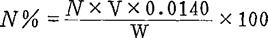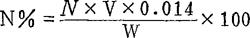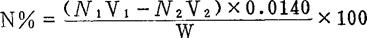 释义 | 中和法 (一)酸直接滴定法 适用于碳酸氢铵含氮量测定,因碳酸氢铵能定量地与强酸作用生成强酸的铵盐及碳酸。当碳酸氢铵全部被酸作用后溶液完全变为二氧化碳的饱和液,使甲基橙由黄色转变为微红色而指示终点。即可根据酸的消耗量计算碳酸氢铵中的含氮量。 1.试剂配制 ①1N硫酸标准液;②0.1%甲基橙指示剂。 2.测定步骤 在清洁干燥已知重量的称瓶中,称取2.000g碳酸氢铵样品,浸入预先盛有80ml蒸馏水及20.00ml1N硫酸标准液的400ml烧杯中,在液面下用玻棒打开瓶盖充分搅拌,使之溶解,加入甲基橙指示剂3滴,在不断搅拌下继续用1N硫酸标准液滴定至微红色为终点。 3.结果计算 式中:N——硫酸标准液当量浓度; V——硫酸标准液毫升数(指烧杯中原有20ml及滴定时消耗毫升数之总和); W——样品重(g)。 4.注释 碳酸氢铵易挥发损失,为减少称量误差,可先用台秤快速称量约为2g的样重,倾入已知重的称瓶中,盖好盖,再移至分析天平上准确称量。称瓶盖只能在酸液浸没的条件下才允许打开。 (二)中和滴定法 适用于碳酸氢铵和氨水的含氮量测定。方法为使样品作用于过量的酸,剩余的酸用标准碱液滴定,根据酸的消耗量计算样品含氮量。 1.试剂配制 ①1N硫酸标准液;②1N氢氧化钠标准液;③0.1%甲基橙指示剂;④0.1%甲基红指示剂。 2.测定步骤 (1)碳酸氢铵含氮量测定:在称瓶中装入约2g碳酸氢铵样品后,准确称量,迅速将样品倾入已盛有50.00ml1N硫酸标准液的三角瓶中,再称称瓶重,求得样品重。轻轻转动三角瓶,使样品反应完全,加热煮沸5min,以逐尽二氧化碳,溶液冷却后,加甲基橙指示剂3滴,以1N氢氧化钠标准液溶液滴定,当由红色变橙色时为终点。 (2)农用氨水中氮的测定:用干燥移液管吸取样液1.50-2.00ml,置于预先放入50.00ml1N的硫酸标准液中,摇匀,加入甲基红指示剂3滴,用1N氢氧化钠标准液滴定剩余的硫酸至溶液呈黄色为终点。同时用精密比重计测定样液比重。 3.结果计算 式中:N1,V1——硫酸标准液当量浓度和毫升数; N2,V2——氢氧化钠标准液当量浓度和毫升数; W——样重(g)。本操作中为氨水体积(ml)乘比重。 (三)固体硼酸吸收法 本法适用于碳酸氢铵及氨水样品的含氮量测定。方法为将样品与硼酸作用,生成定量硼酸二氢铵,然后用标准酸滴定,根据酸的用量计算样品含氮量。 1.试剂配制 (1)固体硼酸(二级)。 (2)1N硫酸标准液。 (3)定氮混合指示剂。 2.测定步骤 称取5-7g硼酸放入250ml三角瓶,加蒸馏水25ml,充分摇动,使固体硼酸尽量溶解,准确称取碳酸氢铵1-2g,迅速倾入硼酸液中,或用装有洗耳球的移液管吸取浓氨水1.00-2.00ml(在较高温度时最好吸取经稀释一倍的氨水2.00-4.00ml),将移液管插入三角瓶的硼酸溶液里,缓缓放出氨液,不断轻摇三角瓶,直至放完氨水。加入定氮混合指示剂2-3滴,用1N硫酸标准液滴定至淡紫红色。 3.结果计算 式中符号同前。氨水样重(W)应为氨水体积乘比重。如欲计算成NH3%时,则将0.0140改为0.017(氨的毫克当量,g)。 4.注释 此固体硼酸溶液可反复滴定用,体积大时,可将上部溶液倒出。但必须保持溶液中有固体硼酸存在。否则应补加固体硼酸及补充指示剂,方可连续使用。 |