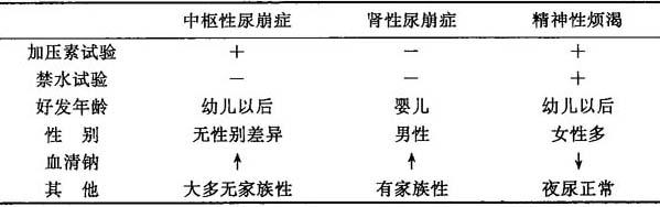 释义 | 中枢性尿崩症 【释义】: 中枢性尿崩症是因抗利尿激素(ADH)分泌不足或肾脏对ADH不反应所引起的以多饮多尿为主要表现的疾病。正常人ADH在深夜和早晨分泌增高,午后较低。本病按病因可分为原发性、继发性、遗传性三种,按发病部位可分为中枢性尿崩症及肾性尿崩症两大类。 1.中枢性尿崩症 多由于垂体后叶或下丘脑病变引起,分为原发性和继发性。原发性又包括特发性和遗传性两种。前者多由于视上核和室旁核神经细胞退行性变引起;后者多有家族史,较少见,可能为常染色体显性遗传,病情较轻。继发性者主要继发于颅内肿瘤,畸形、外伤、感染、手术等。 2.肾性尿崩症 为常染色体显性或性连锁显性遗传,它是先天性远端肾小管对ADH的敏感性下降所致。 【诊断】: 1.临床表现 有典型的烦渴多饮多尿症状,尿比重低下,尿糖阴性应当考虑本病。尿量每天每平方米体表面积超过3000ml,尿比重在1.006以下,肾功能正常者可进行必要的辅助检查,即能明确诊断。 2.辅助检查 (1)莫氏试验 24h尿量明显增多,多次尿比重均低于1.006者。 (2)禁水试验 用于鉴别尿崩症和精神性烦渴。如禁水后尿量明显减少,尿比重高达1.015以上或尿渗透压达300mmol/L以上者,则排除尿崩症,为精神性烦渴。反之如尿量无明显减少,尿比重达不到1.015以上者,甚至有体重下降,或血压下降者则为尿崩症。 (3)加压素试验 用于鉴别中枢性尿崩和肾性尿崩。用水溶性加压素0.1u/kg肌注,注后30~60min若尿量明显减少,比重达1.015以上,尿渗透压300mmol/L者,可诊断为中枢性尿崩症。 (4)其他检查 为查清尿崩的病因学,可作头颅X线摄片、CT或MRI检查。同时应排除糖尿病、肾小管酸中毒、药物因素(利尿药)引起的多饮多尿。 3.鉴别诊断 见表13-2。 表13-2 中枢性尿崩症的鉴别诊断 注 +有效应;-无效应 【治疗】: 治疗原则 尽早诊断及时治疗。 1.激素替代疗法 (1)鞣酸加压素(长效尿崩停) 国产针剂每毫升含神经垂体干粉20mg,含加压素5u,为混悬液,用前加温摇匀。每次0.1~0.3ml肌注,由小剂量开始,药效可维持3~7d,待药效消失后再注射第2次,并观察患者对药物的反应后,再逐步调整剂量,每次增加0.1ml,年长儿最多每次注0.4~0.5ml,但应注意剂量过大可引起面色苍白、血压过高及腹痛等症状,若药效尚未消失重复注射剂量大者可致水中毒。3岁以下小儿慎用。 (2)精氨酸加压素(DDAVP)鼻吸剂 此药系人工合成,抗利尿作用甚强,效果持久,可达24h,无血管加压素的不良反应。剂量因个体而异,每次2.5~10μg可逐渐增加直至显效,每日1~2次。 (3)垂体后叶素粉剂(尿崩停) 可涂于鼻黏膜,剂量每次15~20mg,每日2次。疗效短(3~8h)。 (4)DDAVP口服药片(商品名弥凝) 较方便有效,按病情及小儿年龄每次1/2~1片,每日2次,药效维持8~15h。 2.口服非激素类药物 (1)氯磺丙脲 每日用量10~20mg/kg分2次服用。抗利尿效果可维持24~36h,可刺激ADH释放,并加强肾小管上皮细胞对水的重吸收。对完全ADH缺乏者无效。 (2)安妥明 有促进ADH释放作用,每日用量50~100mg/kg分2~3次口服,注意随访肝功能。 (3)DCT(双克) 及中药六味地黄丸可改善临床症状。DCT每日1~2mg/kg,分2次服,注意补钾。宜用于肾性尿崩症。 |