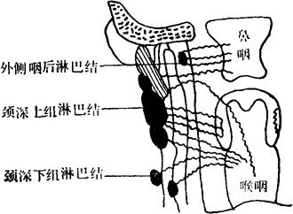 释义 | 临床特点 男性病人多于女性,二者之比为10∶1,高发年龄段在50~60岁。多数病人有吸烟和(或)饮酒史。其中15%~20%的病人可能伴有上呼吸消化道的第二原发肿瘤。 头颈部肿瘤的表现特点是,多数肿瘤呈蕈样外生型生长或乳头状,可伴有局部浸润性溃疡,也可呈内生型或浸润性生长,肿瘤周围界限不清,浸润行为恶劣,与外生型肿瘤相比发展快且预后差。 首发症状体征与肿瘤发生的部位及其发展程度有直接关系,但由于解剖毗邻,多数头颈部肿瘤有一定的共同表现,不同的肿瘤可产生相同的症状体征,反之,同一症状体征可由不同部位的肿瘤引起,但各种头颈部肿瘤均可出现颈部和(或)锁骨上淋巴结转移。常见肿瘤的症状体征有局部肿胀,疼痛,破溃,出血,吞咽疼痛或吞咽不畅,张口受限,言语不清,反射性耳痛,耳鸣,声嘶,发音困难,鼻塞鼻衄等。 生长方式 头颈部肿瘤多趋于局部发展,逐渐向周围及深部组织浸润。发生于颅神经周围的肿瘤可以沿神经周围间隙向颅底或颅内侵犯。骨及软骨周围的肿瘤可以侵犯骨膜、骨和软骨。多数头颈部肿瘤易发生溃疡感染出血,晚期肿瘤侵犯大血管,如颈静脉可引起大出血。 由于头颈部的淋巴引流丰富,许多肿瘤早期易发生局部及区域淋巴结转移,如颌下淋巴结(舌癌,口底癌,唇癌),颈深上淋巴结及二腹肌下淋巴结(喉癌,下咽癌,舌癌)以及锁骨上淋巴结(图5-1)。 图5-1 颈部淋巴结分布 转移部位 恶性度高的肿瘤除早期发生区域淋巴结转移外,血行转移的机率较高,如舌癌,扁桃体癌,下咽癌,声门上型喉癌等,多见于肺,骨,肝脏及脑转移等。头颈部肉瘤,黑色素瘤及其他肿瘤,如未分化癌的血行转移更常见且多在病程的早期,也多见于肺,骨,肝脏转移等。 |