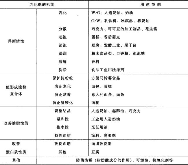 释义 | 乳化剂概述 (一)乳化剂的特性 乳化剂是能促使两种互不相溶的液体(如油和水)形成稳定的分散体系的物质,乳化剂是焙烤食品中常用的一类食品添加剂。 食品是含有水、蛋白质、脂肪、糖类等组分的多相体系,但其中许多成分是互不相溶的,如油和水就很难均匀地混合。由于各组分混合不均匀,致使食品中出现油水分离、焙烤食品发硬等现象。乳化剂正是能使食品中的多相体系各组分相互融合,形成稳定、均匀的形态,改善内部结构,简化和控制加工过程,提高食品质量的一类食品添加剂。在食品加工中常使用它来达到乳化、分散、起酥、稳定、发泡或消泡等目的,乳化剂还有改进食品风味、延长货架期的作用。 所谓乳化就是把本来不相融合的两种物质,例如油和水变成类似牛乳样的均一混合状态的乳浊液。添加少量的乳化剂,即可显着降低油、水两相界面张力,产生乳化效果。乳化剂也称表面活性剂,其作用就是在分散相表面形成保护膜,降低表面张力,形成双电层。乳化剂分子结构中一部分与油脂中的烃类结构相近似,易溶于油,叫亲油基;另一部分是被水湿润,易溶于水的基团,叫亲水基。乳化剂在油、水两相的界面上,亲油基伸入油相,亲水基伸入水相,这样使其中一相能在另一相中均匀地分散,形成稳定的乳化体。乳化剂分子亲水基的部分主要有甘油、蔗糖、山梨醇、丙烯甘油醇等,亲油基部分是脂肪酸。 乳化剂的乳化特性和许多功效通常是由其分子中亲水基的亲水性和亲油基的憎水性的相对强度所决定,良好的乳化剂在其亲水性和疏水性之间必须有相当的平衡。亲水性强的乳化剂,能改善油在乳化体内的分散相,使水均匀地包围在油粒的周围,成为水包油型乳化体(油/水、O/W),这类乳化剂称为水溶性乳化剂;反之,能使水均匀分散在油里,形成油包水(水/油、W/O)型乳化体的乳化剂,为油溶性乳化剂。 两类乳化剂的特性以亲水亲油平衡值(Hydrophilyty and lipophilyty balance,简称HLB)表示。该值规定100%亲油性乳化剂HLB值为0,而100%亲水性乳化剂HLB值为20,将0~20划分20等分,以表示其亲水、亲油性的强弱。也就是说亲油、亲水两基团等量时的HLB值为10。 HLB值不同,乳化剂的作用亦不同。一般HLB值在1.5~3的乳化剂具有消泡作用,油溶性乳化剂HLB值在3.5~6,水溶性乳化剂HLB值在8~18;HLB值在7~9的乳化剂具有湿润作用,HLB值在13~15有清洗作用,而HLB值在15~18有助溶作用。 各种乳化剂都有特定的HLB值,但蔗糖脂肪酸酯由于为单酯,双酯和三酯的混合物,其三者的比例不同,故有HLB为3~15的8个品种。 在食品工业中选择乳化剂的第一个指标就是HLB值,但乳化剂的临界胶束浓度(CMC值)也是其另一重要指标。CMC值实际上是一个浓度范围,它表示乳化剂形成胶束的最低浓度。乳化剂的浓度在稍高于临界胶束浓度时,才能充分显示其作用,在使用时,如果乳化剂的浓度低于CMC值,那么在分散相表面所形成的界面膜密度达不到所需程度,效果往往不好。 (二)乳化剂的作用 乳化剂作为一种高效的食品添加剂被广泛地应用,其主要作用如下: (1)由于乳化剂本身的两亲特性,能增加食品组分间的亲和力,降低界面张力,提高食品质量,改善食品原料的加工工艺性能。 (2)与淀粉形成配合物,使产品得到较好的瓤结构,增大食品体积,防止老化及保鲜。 (3)用做油脂结晶调整剂,控制食品中油脂的结晶结构,改善食品口感质量。 (4)与原料中的蛋白质及油脂配合,增强面团强度。 (5)充气,稳定和改善气泡组织结构,提高食品内部结构质量,使食品更快释放出香味。 (6)提高食品的持水性,使产品更加柔软,可使食品增重。 (7)代替昂贵的配料,降低成本。 (8)乳化后的营养成分更容易被人体吸收,某些乳化剂有杀菌防腐效果。 我国允许直接用于焙烤食品的乳化剂种类较多,目前用量较大的有单酸甘油酯、蔗糖酯、山梨糖醇酯、丙二醇脂肪酸酯等。在食品工业中乳化剂的机能和用途主要如表1-3-1所示。 表1-3-1 食品乳化剂的机能和用途 (三)乳化剂使用注意事项 (1)各种乳化剂的HLB值是选择乳化剂的极具参考性的数据,结合实践经验,应选用乳化体所需pH略高的品种,可达到提高乳化体稳定性的预期效果。 (2)理想的乳化剂,应该是水相、油相的亲和力均较强。故应用中多取HLB值大的和HLB值小的两种乳化剂混用,常致相乘效果。一般乳化剂品种的HLB值相差在5以内。 (3)选择水溶性乳化剂时,乳化剂亲油基与乳化体中的有机溶质的结构越相似,则乳化效果越好,且用量少。 (4)使用中应与增稠剂和相对密度调节剂等配合使用,以提高乳化剂的稳定作用。 (四)乳化液制备技术 在焙烤食品工业中,许多商品乳化剂都可以直接使用,但有时也需要将乳化剂制备成乳化液。乳化液的制备是根据不同的乳化对象来选择适当的乳化剂品种和适当的条件,是经验性很强的工作。应首先确定乳化剂的HLB值,选定复合(或单一)乳化剂的品种、用量和配比,再根据试验对乳化液的配比、pH、黏稠度等进行调整。 乳化液的制备技术,按乳化剂的加入方式,主要分为三类: 1.乳化剂在油中法 先将溶解有乳化剂的油类加热,然后在搅拌条件下加入温水,开始为W/O型乳液,再继续加水可得O/W型的。此法用于HLB值较小的乳化剂。 2.乳化剂在水中法 先将乳化剂溶于水,在搅拌中将油加入,此法先产生O/W型乳液,再继续加油则发生相转变为W/O型。此法用于HLB值较大的乳化剂。 3.轮流