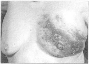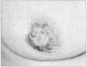 释义 | 乳腺疾病的测试和诊断 7.7.1 病史采集 即使是年轻女性,当她有乳腺症状时,都想知道是不是乳癌,有些人非常焦虑,虽然大部分人不是乳癌,但当采集病史时,应当注意乳腺症状相关的焦虑和不安,男性对于乳腺增生症也有类似的焦虑。 1.患者主诉 存在的症状有是否有疼痛、肿块或溢液,根据病人的年龄,来决定问病史时哪些问题适当,有时病人还有其他症状。 (1)乳腺疼痛 (见表37)持续数天的严重乳腺疼痛提示感染(乳腺炎),可发展为形成脓肿。病人有哺乳史或类似病史,体格检查可触及皮肤压痛、变硬、发热和变红。 表37 乳腺疼痛的原因 更持久的乳腺疼痛(乳腺痛)可见于生育期的任何时间,可缓解。注意症状的持续时间、严重度、是否加重或减轻,是周期性的亦或持续性的,周期性乳腺痛常为良性,非周期性也多为良性。确定疼痛是否来自乳腺,胸壁疼痛有时会与乳腺痛相混淆。应询问病人的问题有: ●“注意到有没有情况会使疼痛更严重?” ●“怎样才能不痛,用止痛药会好些吗?” ●“疼痛开始时与你的生活习惯、饮食或用药改变有关吗?” ●“你吃口服避孕药吗?” 周期性乳腺痛可与乳腺肿块有关,常为局部的纤维化或囊性变,在绝经期前常见。 (2)乳腺肿块 (见表38)常见的诊断有纤维腺瘤、纤维腺病、囊肿或乳癌,但也有较少见者,脂肪坏死病人有明确的乳房受打击病史,皮肤病变可掩盖乳腺肿块。肉瘤、寒性脓肿和其他病变少见。 表38 乳腺肿块的原因 建议首先提问乳腺肿块的发病时间。 ●“肿块一直是这样大小,还是慢慢增大?” ●“肿块大小随月经周期有影响吗?(这样的病例常为良性)” ●“肿块是疼痛、压痛,还是完全不痛?” ●“你以前有乳腺肿块吗?如果有,做过活检吗?结果是什么?” 此时还应问病人一些关于乳癌危险因素的问题。 乳癌有远隔转移的症状非常少见,可能的症状有近期的局部骨痛和呼吸困难。 病人需要手术治疗时,应当测试对麻醉和门诊手术的适应性。 男性乳腺增生常与药物有关(西咪替丁、激素及影响激素代谢的药物),常见于青春早期的男孩,也见于睾丸激素水平下降的老年人,可有女性化内分泌肿瘤的特点,但非常少见,病人应当问药物和激素治疗史并检查生殖器。 (3)乳头溢液 溢液可能是白色、黄色、清澈或血性,除血性液外均为腺体所分泌,即为乳汁。 溢乳症(乳汁的异常分泌)可持续于哺乳结束后的几个月,应有生育病史,由垂体泌乳素瘤引起的溢乳症非常少见,可询问头痛和视力情况并检查视野,通常溢乳症是轻微的,难以解释,自限性的,如果病人有肿块或乳腺痛症状,可按上述线索提问。 血性溢液通常提示导管内乳头状瘤或乳癌,应当向病人明确血是来自乳腺内部。乳头湿疹样癌存在乳头回缩腐蚀,亦可出血(图209)。 表39 乳腺癌的危险因素 图209 乳头Paget病 7.7.2 体格检查 男性检查者应有同伴,病人暴露至腰部,检查包括乳腺、双腋窝和锁骨上窝。 视诊时病人应面朝检查者,手臂位于两侧,观察皮肤颜色的改变,乳腺的对称性和有无异常轮廓(正常两侧乳腺大小并不完全相等),观察皮肤的凹陷和牵拉,检查乳头和乳晕正常,乳癌上方的皮肤可产生明显的橘皮样改变,但并不常见。 让病人将手臂举至头上方,重复视诊,此姿势下乳癌造成的皮肤牵拉更为明显。 7.7.3 对有乳腺症状的病人的照顾 ●适当安慰——大多数症状与乳癌无关。 ●抽出囊液可使囊肿消失——安慰病人疾病为良性。 ●实体肿块需要穿刺细胞学检查。 ●年龄大于35岁者需要做乳腺摄片。 ●肿块为恶性或可疑恶性者需手术切除。 乳癌致乳头回缩见图211。 图210 乳腺癌晚期霉菌样变 图211 乳腺癌乳头内陷和橘皮样皮肤改变 乳腺触诊 触诊时病人最好平卧于检查床上,如乳腺大,可让病人在检查时把手放在头后并稍向对侧转,使乳腺平置于胸壁,通常先检查无症状侧,以便得到正常乳腺的印象,可光滑或有结节,要检查双侧,让病人在检查前指出压痛区域(图212)。 图212 乳腺触诊 触诊乳腺时用手指平放,在胸壁上滚动乳腺组织,要系统检查整个乳腺,好的方法是自乳晕下方开始环状检查,确保每个象限均被查到,注意乳腺尾叶伸至腋窝前界,是乳腺病的好发区域。 压痛区常与感染(注意热、红和硬)或纤维囊性病变有关,除非有肿块或感染的迹象,压痛并不确定,触诊可以查到分散的肿块,不明显的多发肿物或局部增厚,后两者如无其他症状可视为正常,年轻患者可滑动的圆形肿块常为纤维腺瘤,囊肿和癌都为固定或随乳腺运动的质硬肿块。小心下方的肋骨可造成乳腺某些区域的突起,不要误为肿块。 囊肿相对光滑而癌则界不清,但临床两者难以区别。囊肿常无波动性。大的癌肿可牵拉皮肤或胸壁,检查皮肤在肿块上的运动,当病人提臀时肿块不固定(可紧张胸大肌)。 乳腺肿块细针穿刺 用酒精或其他消毒剂洗净肿块上方乳腺皮肤。 使用空的10ml注射器带21号针头(绿色)。 洗手,戴手套,用非持针手固定皮肤。以针头刺入肿块,用注射器连续反复抽吸(图213),吸出少量的液体和细胞进入针筒,可涂在显微镜玻片上,固定(或晾干)送细胞学检查。 图213 乳腺肿物吸引术 (李航宇 刘利群 译) |