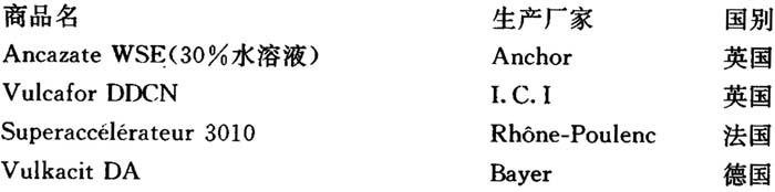 释义 | 二乙基二硫代氨基甲酸二乙铵 【结构式】: 【释文】: 性质 白色或乳白色结晶粉末。有特殊的胺味。分子量208。相对密度1.1~1.2。熔点80℃。溶于水及一般有机溶剂,不溶于汽油。本品的商品形式有含量30 %的水溶液,为黄色液体,相对密度1.028。 用途 本品为胶乳用超速硫化促进剂,硫化活性大,与异丙基黄原酸钠或二乙基二硫代氨基甲酸钠促进剂并用,可用于室温快速硫化。硫化胶无味、无臭。 国外生产厂 |