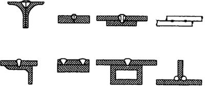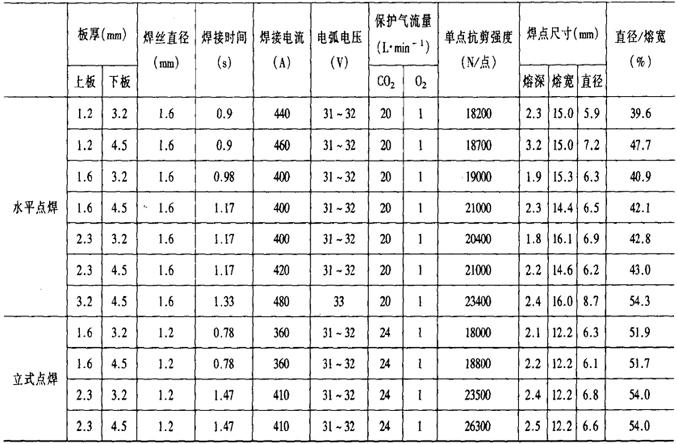 释义 | 二氧化碳电弧点焊工艺 1.接头形式 二氧化碳电弧点焊的接头形式如图1-5-7所示。 图1-5-7 二氧化碳电弧点焊的接头形式[1] 2.焊接工艺参数 二氧化碳电弧点焊的焊接工艺参数主要有:焊丝直径、焊接电流、电弧电压及点焊时间。焊接电流及电弧电压的选择与一般二氧化碳焊大体相同,一般应根据板厚、接头形式及焊接位置进行选择,板厚越大,选择的焊丝直径、电流及点焊时间也应越大。进行仰面位置的点焊时应尽量采用大电流、低电压、短时间及大的气体流量,以防止熔池金属坠落。进行垂直位置的点焊时,焊接时间要比仰焊时更短。表1-5-30给出了典型二氧化碳电弧点焊工艺参数。 表1-5-30 低碳钢二氧化碳电弧点焊工艺参数[10] |