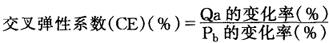 例如咖啡的价格下落,其消费量将增加,又将引起对砂糖的需要增加。这种关系的程度可用交叉弹性系数来衡量,在这个例子中,交叉弹性系数表明砂糖购买量的变化与咖啡价格变化之间的关系。其系数公式如下: