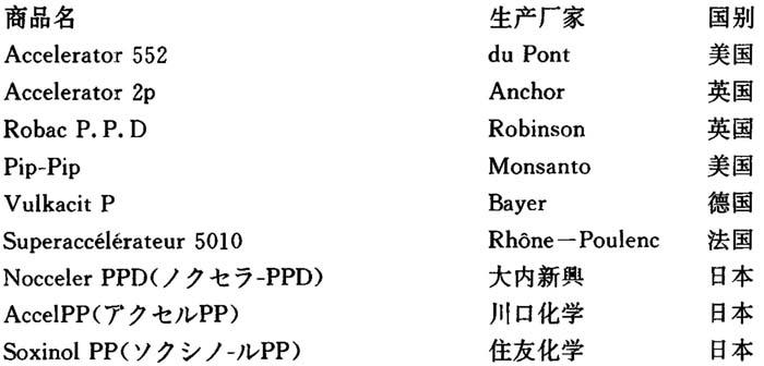 释义 | 五亚甲基二硫代氨基甲酸哌啶;哌啶基二硫代氨基甲酸哌啶 【结构式】: 【释文】: 制法 由哌啶(2mo1)和二硫化碳(1mo1)反应而得。 性质 淡黄色粉末。分子量246.44。相对密度1.13~1.23。.熔点160~175℃。灰分<0.3%。易溶于苯、二氯甲烷、四氯化碳,溶于水,微溶于乙醇和丙酮,不溶于汽油。有吸湿性。微具胺味,但硫化胶无味。长期贮存过程中会缓慢分解,丧失活性。应贮放于阴凉通风场所。 用途 本品为超速硫化促进剂,适用于天然橡胶、丁苯橡胶、异戊橡胶、顺丁橡胶、丁腈橡胶、三元乙丙橡胶及胶乳。硫化促进效力大,是二硫代氨基甲酸铵盐中硫化活性最强的品种,适用于室温硫化和低温硫化。单独使用时添加量1份左右。与少量的噻唑类、次磺酰胺类或丁基黄原酸锌盐等促进剂并用,硫化效果更加提高。硫化胶的定伸强度高,耐老化性能好。本品焦烧倾向大,混炼时须特别注意。在胶乳中,本品一般不单用,常与二硫代氨基甲酸锌盐之类的水不溶性促进剂并用,以提高促进硫化的效果。本品不污染,不变色,主要用于各种胶乳制品、橡胶粘固剂、低温或自然硫化制品。本品对G型氯丁橡胶有塑解剂功能(添加量为1~2份)。 毒性 大白鼠经口LD50为450~1000mg/kg体重。对眼睛和皮肤有刺激性。 国外生产厂 |