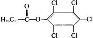 释义 | 五氯苯酚月桂酸酯 【结构式】: 【释文】: 性质 褐色油状粘稠液体。相对密度1.28。 用途 本品为一有效的防霉剂,适用于塑料、纤维、木材、海底电缆等。杀菌和防霉效能高,具有疏水性。一般用量0.5~1%。 国外生产厂 |