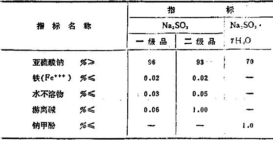 注:无水亚硫酸钠按化学工业部标准HG1-209-65。7水亚硫酸钠为锦州石油六厂对甲酚副产品。