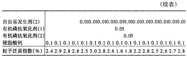 释义 | 交联乙烯类聚合物 此交联乙烯类聚合物的制造特点是:在含残留催化剂钛5mg/kg以上、钒0.5mg/kg以上的乙烯类聚合物中,配入特定量的酚类抗氧化剂、多元醇或此多元醇的部分脂肪酸酯(以下称化合物A)和自由基发生剂,在150~300℃熔融混炼处理制成交联聚乙烯。此产品无着色,其机械强度和耐热刚性等都有所改善,适用于注射成型、挤压成型(特别适用于覆盖电线或制造泡沫塑料)、吹塑成型等制造各种制品。 一般乙烯类聚合物比较廉价,有优良的机械性能,可用来制造注射成型品、中空成型品、薄膜、薄板和纤维等各种成型产品。但是,乙烯类聚合物在成型加工时需要加热到其熔点以上,这种熔融混炼过程的热量易使其氧化而老化,出现着色和有气味等问题。为此,常添加如2,6-二叔丁基对羟基甲苯(BHT,抗氧剂264)等低分子量抗氧剂,在实用时为提高热稳定性常使用高分子量抗氧剂。 但上述酚类抗氧剂与乙烯聚合物熔融混炼时,可能与乙烯类聚合物中残留的催化剂钛和钒的络合物反应,氧化成为醌类化合物,使乙烯类聚合物着色。为防止这种着色,可在乙烯类聚合物中添加季戊四醇或季戊四醇的氧化丙烯化物。 此外,为改善乙烯类聚合物的机械强度和耐热刚性,乙烯类聚合物常在自由基发生剂存在时采用熔融混炼处理或电子束辐射处理等方法制成交联聚乙烯。此外,添加磷衍生物、卤化对硝基苯胺或特定的磷酸盐等电压稳定剂,可制得具有优良耐电压强度的电绝缘的聚烯烃。为提高其耐电压强度,在这种电压稳定剂中添加多元醇或山梨醇单硬脂酸等非离子表面活性剂,同时添加有机过氧化物,制成电绝缘交联聚烯烃组合物。但这些添加剂与聚烯烃中的残留催化剂混炼时,也可能有着色现象产生。 而本品在制造过程中对以上各种方法作了改进。它是由残存催化剂钛含量为5mg/kg以上,钒含量为0.5mg/kg以上的乙烯类聚合物100份、多元醇或多元醇的部分脂肪酸酯(以下称化合物A)0.01~1份(最好为0.05~0.5份)、酚类抗氧剂0.01~1份(最好为0.05~0.5份)、自由基发生剂0.001~0.5份(最好为0.01~0.2份)混合,在150~300℃进行熔融混炼处理而制得的。 例1~16 聚乙烯熔流率(190℃、负荷2.16kg)为1.5g/10min,以齐格勒法制造的高密度聚乙烯(钛含量8mg/kg)100份;作为化合物A的有:(1)三羟甲基丙烷;(2)甘油单硬脂酸酯;(3)季戊四醇单硬脂酸酯;(4)季戊四醇二硬脂酸酯。作为酚类抗氧剂的有(1)抗氧剂264;(2)四[亚甲基-3-(3′,5′-双-叔丁基-4′-羟基苯酚)丙酸酯]甲烷(抗氧剂1010);(3)1,3,5-三甲基-2,4,6-三(3,5-二叔丁基-4-羟基苯甲基)苯;(4)1,3,5-三(3,5-二叔丁基-4-羟基苯)异氰脲酸酯;(5)正十八烷基-β-(4′-羟基-3′,5′-二叔丁基苯基)丙酸酯(抗氧剂1076)。作为自由基发生剂的有(1)2,5-二甲基-2,5-二(过氧化叔丁基)己烷;(2)1,3-双(过氧化叔丁基异丙基)苯。有时可加有机磷抗氧剂:(1)四(2,4-双叔丁基苯)4,4′-二苯二基双磷酸酯;(2)双(2,4-双叔丁基苯)季戊四醇双磷酸酯。其他添加剂有硬脂酸钙。然后按表1的数量和比例配合,在高速捏合机中经3分钟搅拌混合,再以口径为40mm的单轴挤出机,在200℃下作熔融混炼处理交联、造粒,最后将粒子进行着色等试验,试验结果也列于下表1。 表1 交联聚乙烯的配方和性能 例17~32 采用齐格勒法制的乙烯-丙烯共聚物(熔流率为0.5g/10min,粉状聚合物,3.0个甲基分支/1000碳原子,钛含量为8mg/kg)100份。它们的化合物A、酚类抗氧剂、自由基发生剂、有机磷抗氧剂的品种同例1~16,配方如表2所列。高速搅拌3分钟后在口径为40mm的单轴挤出机中,200℃下进行熔融混炼处理、交联、造粒,并测定其着色性,结果也列于表2。 表2 交联乙烯-丙烯共聚物的配方与性能 例33~48 乙烯-丁烯-1-共聚物,熔流率为1.0g/10min,粉状聚合物,0.014个乙基分支/1000个碳原子,钒含量为0.6mg/kg。它们的化合物A、酚类抗氧剂、自由基发生剂、有机磷抗氧剂的品种同例1~16,配比列于表3。像例1~16那样进行搅拌混合、熔融混炼处理、交联、造粒,并测定粒子的着色性,结果也列于表3。 表3 乙烯-丁烯-1-共聚物的配方与性能 例49~64 粉状非晶态乙烯-丙烯共聚物(门尼(Mooney)粘度ML1+4(100℃)25,丙烯含量25%,钒含量0.6mg/kg)100份。它们的化合物A、酚类抗氧剂、自由基发生剂、有机磷抗氧剂的品种同例1~16,配方列于表4。按表4所列的配方进行高速搅拌3分钟,通过口径40mm的单轴挤出机,在200℃下进行熔融混炼处理、交联、造粒,并测定其着色性,结果也列于表4。 表4 粒状非晶态乙烯-丙烯共聚物的配方和性能 (日本特许公开:05-88858) |