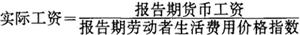 释义 | 什么是实际工资? “名义工资”的对称。指工资货币额在一定时期内能够实际购买到的生活资料和服务(包括房租、公用事业的服务、理发、洗澡等等)的数量。实际工资是反映劳动者实际生活水平的一个重要标志。在名义工资不变的情况下,实际工资水平取决于消费品价格(或劳务费)、房租、捐税等因素。一般讲,如果消费品价格或各种服务费用等上涨的幅度大于职工名义工资增长的幅度,就会引起劳动者实际工资的下降,实际工资的计算公式如下: |